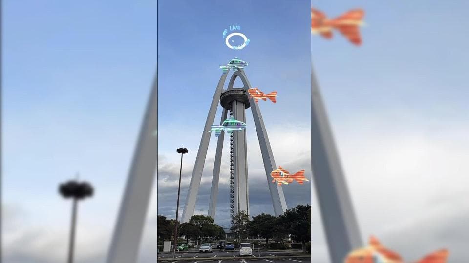 Goldfish circling Takamatsu Symbol Tower